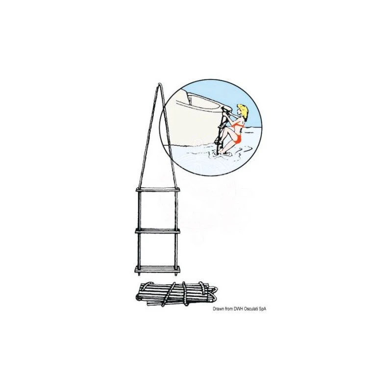 Cette échelle en corde est légère et pratique à ranger.
